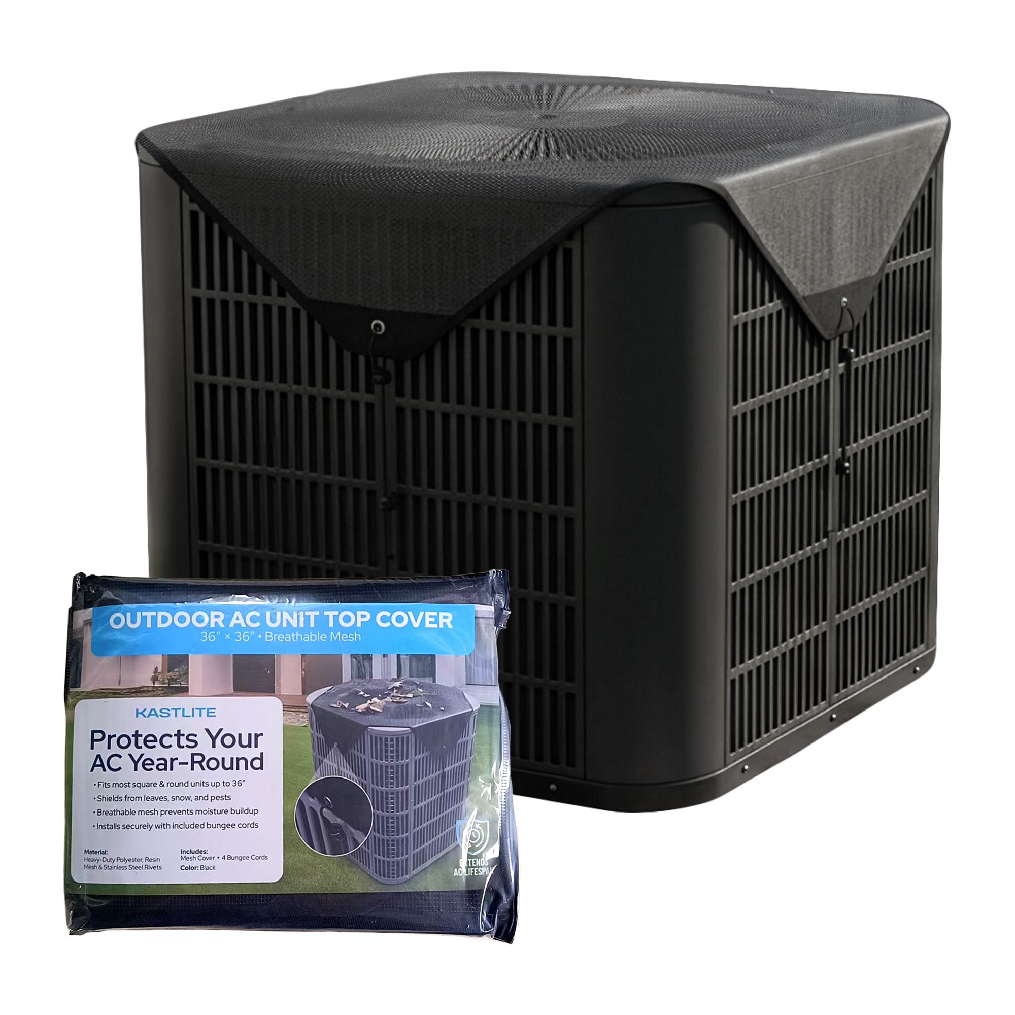 36"×36" Top Mesh AC Cover for Outside Unit with Non-Scratch Bungee Cord Hooks - HVAC Screen, Compressor, Condenser, Vent/Fan Shade, All-Season Defender