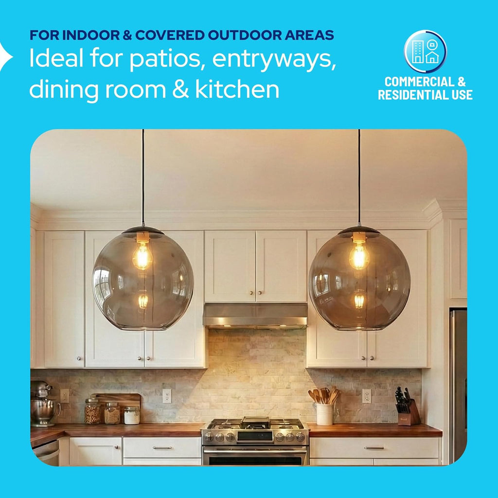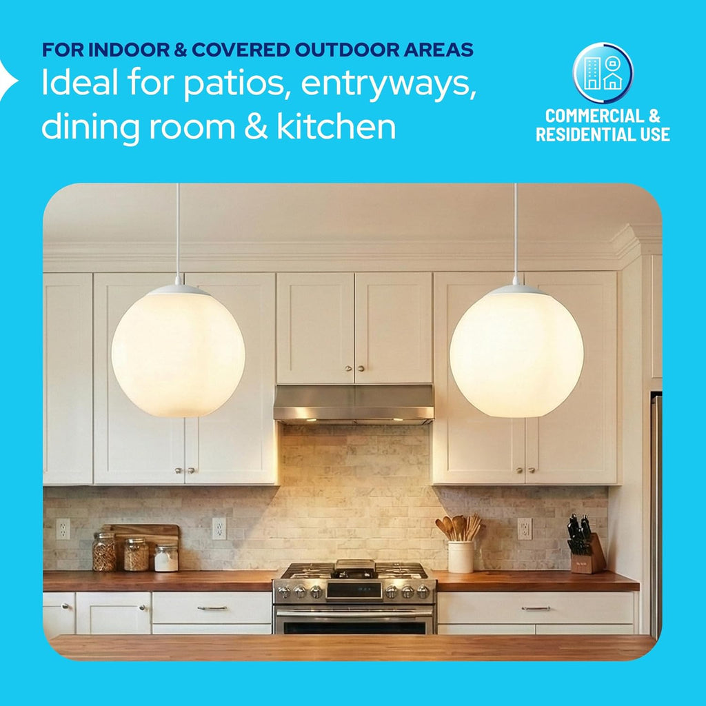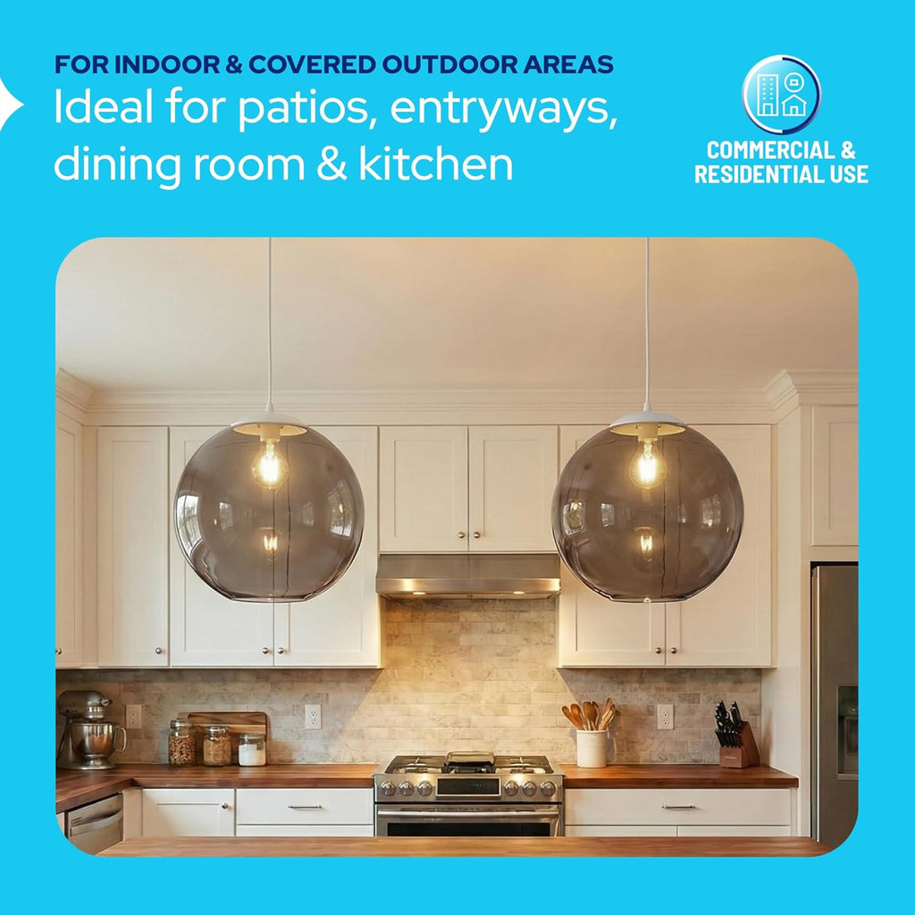 CLEAN, BRIGHT & BALANCED LIGHT: These LED hanging kitchen lights give off 800 lumens of even warm white light. The open-bottom globe cuts glare, making it ideal for kitchen island lighting and nearby work areas.