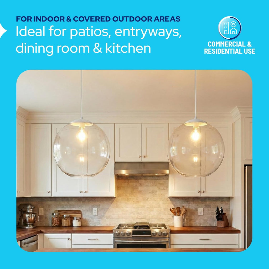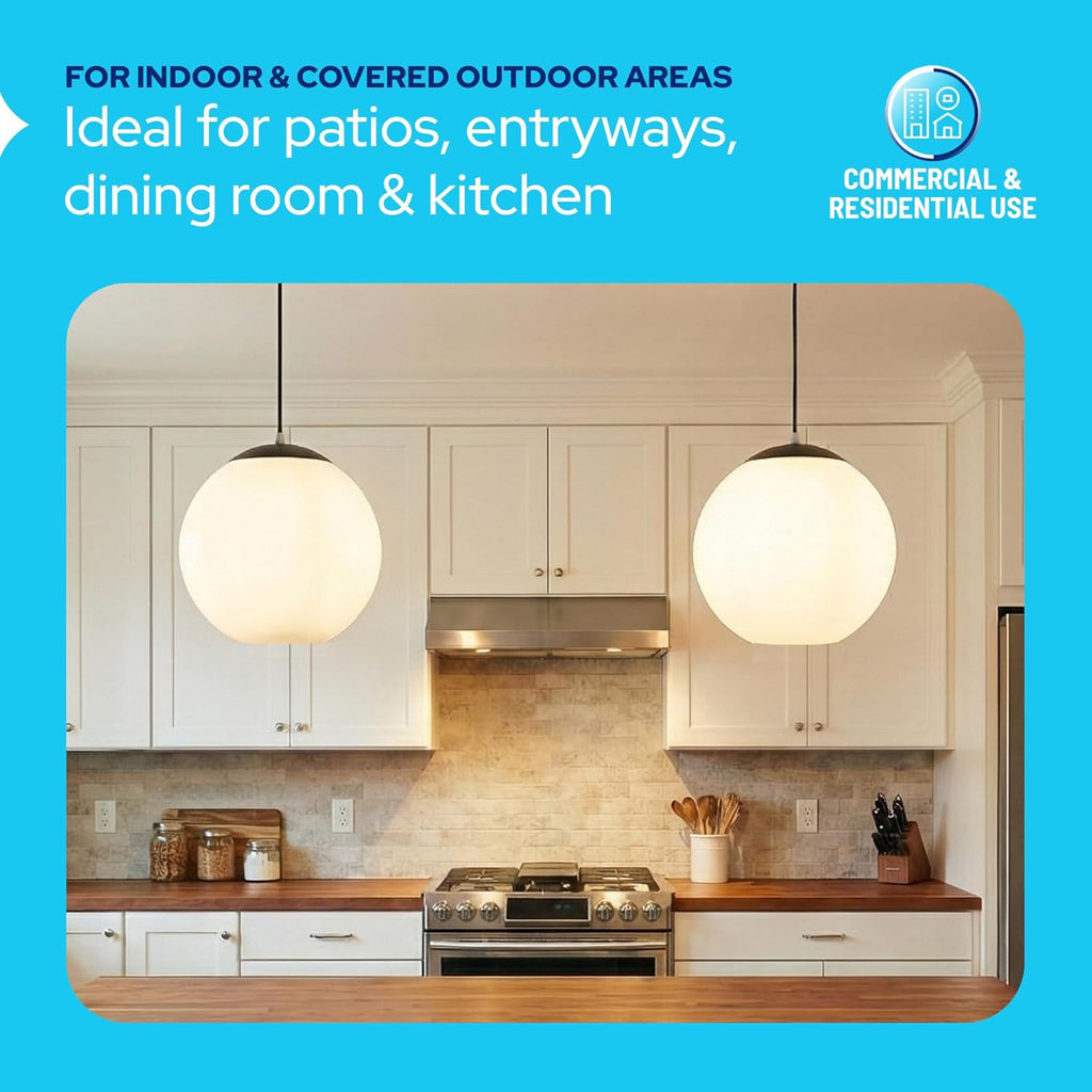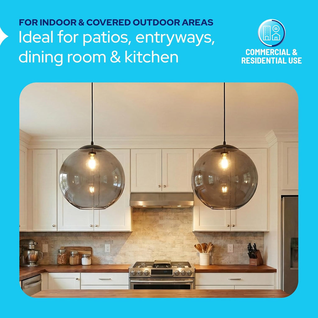 CLEAN, BRIGHT & BALANCED LIGHT: These LED hanging kitchen lights give off 800 lumens of even warm white light. The open-bottom globe cuts glare, making it ideal for kitchen island lighting and nearby work areas.