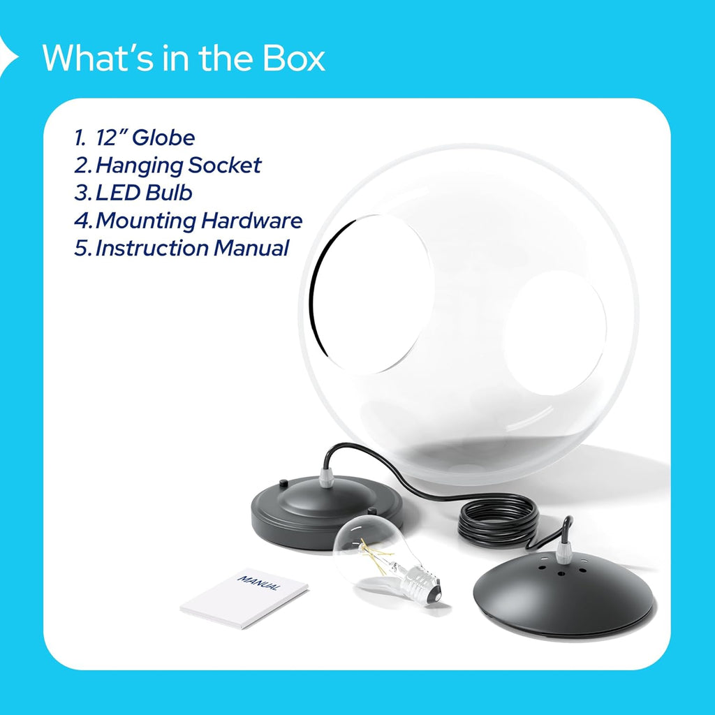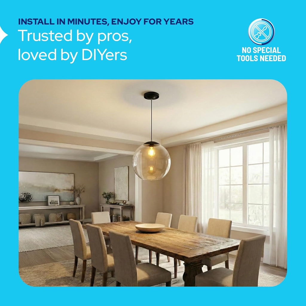 ALL-IN-ONE LIGHTING KIT: Includes a 12" open-bottom globe light cover, matte black ceiling mount, and 8W filament LED bulb — everything you need for quick updates to pendant lights kitchen island setups and modern spaces.