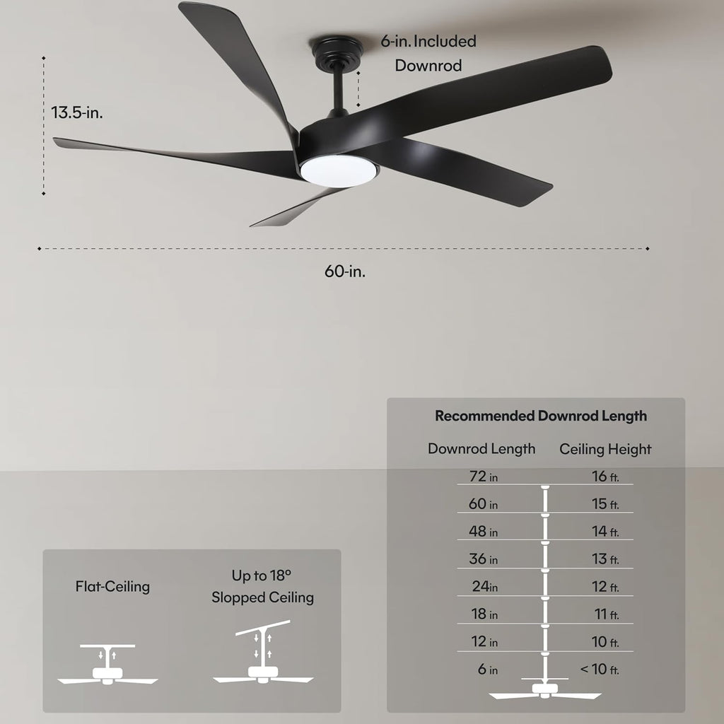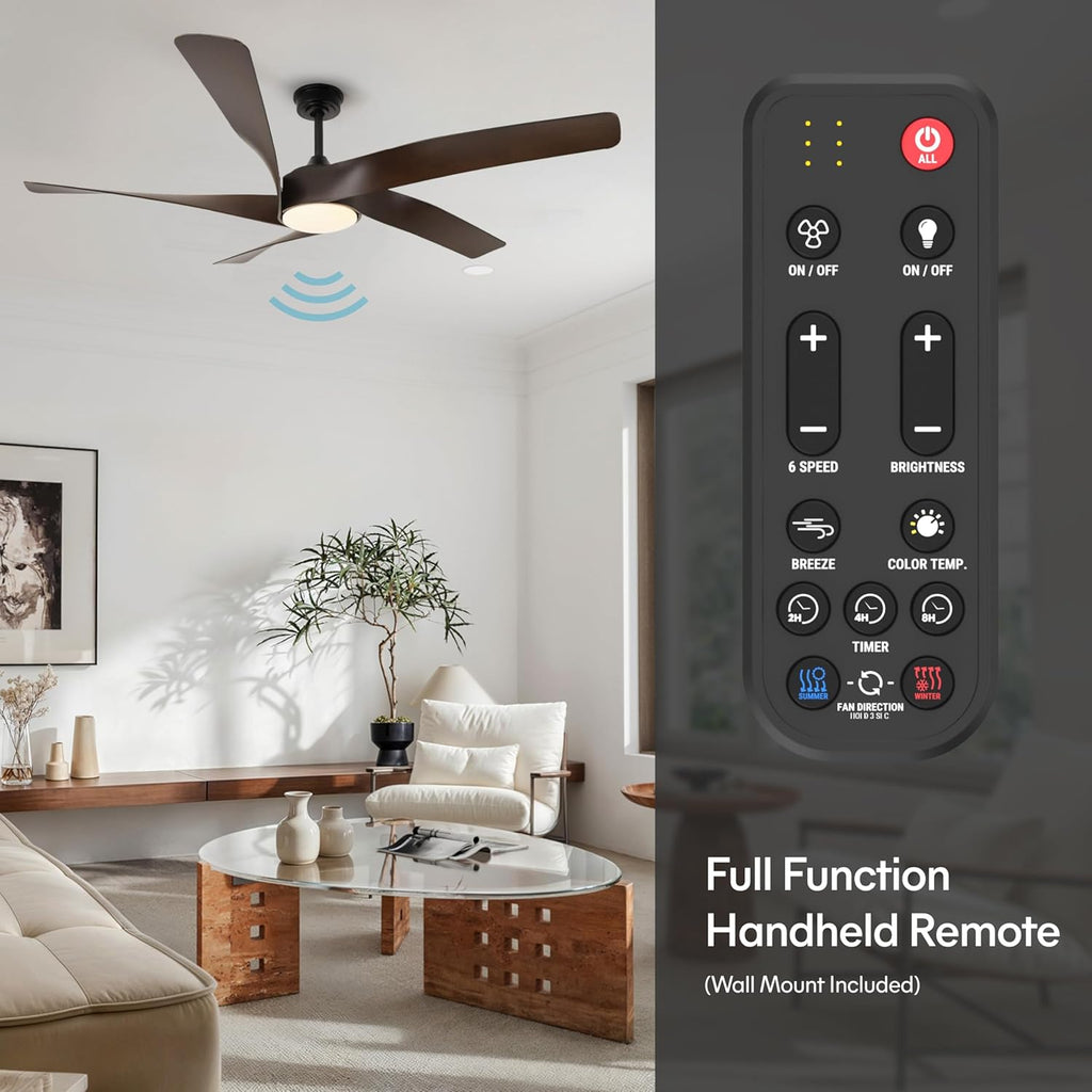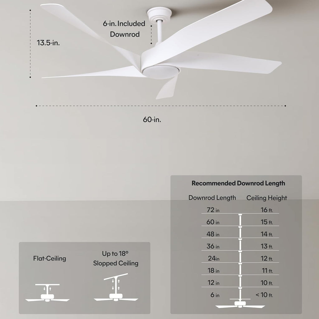 60-Inch Matte White Ceiling Fan with Light & Remote Control | 6CCT Dimmable LED