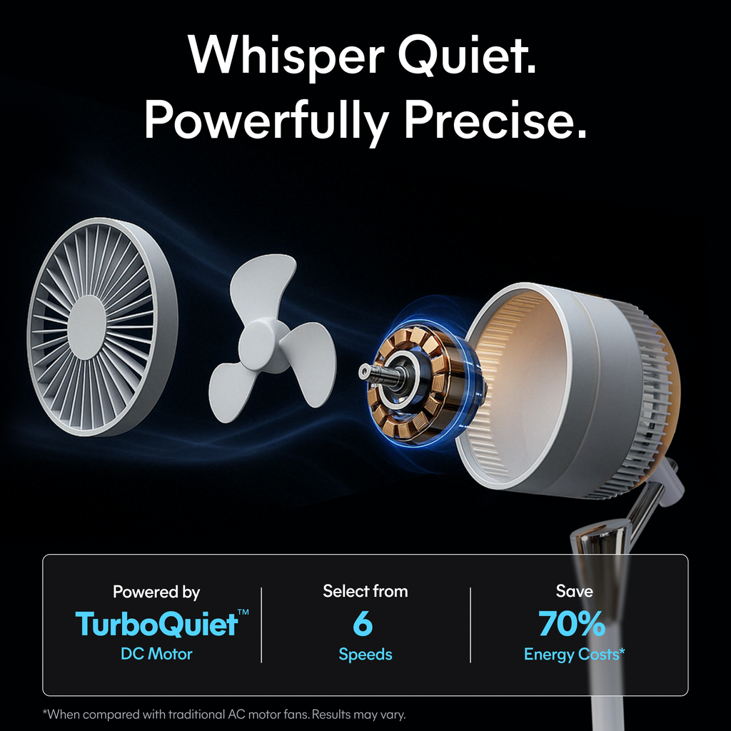 6-Speed Silent DC Cooling, Dimmable LED Lighting, Horizontal & Vertical Oscillation, Remote Control & Touch Buttons
