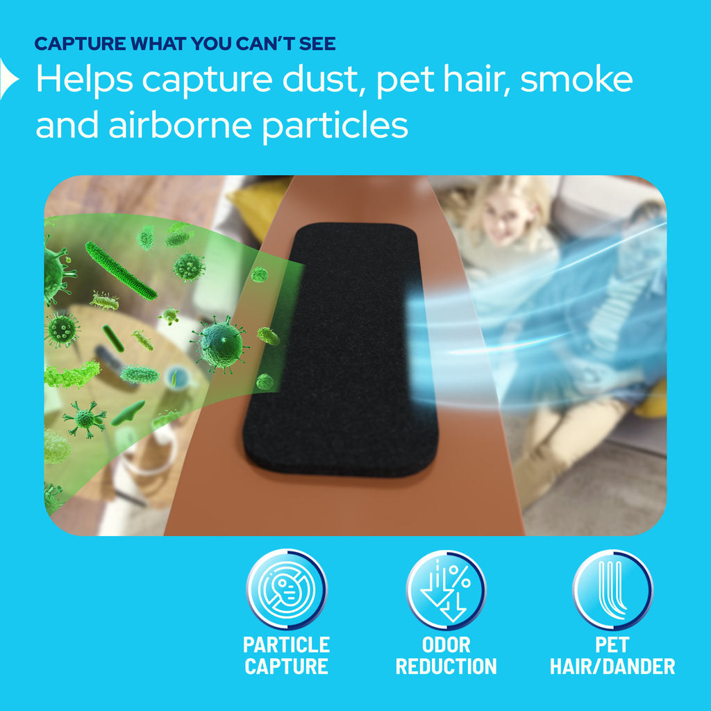 Our ceiling fan purifier pads use an activated carbon filter with up to 1200 m²/g surface area to capture fine dust, pet dander, smoke, VOCs, and odors—helping you breathe cleaner air at home.