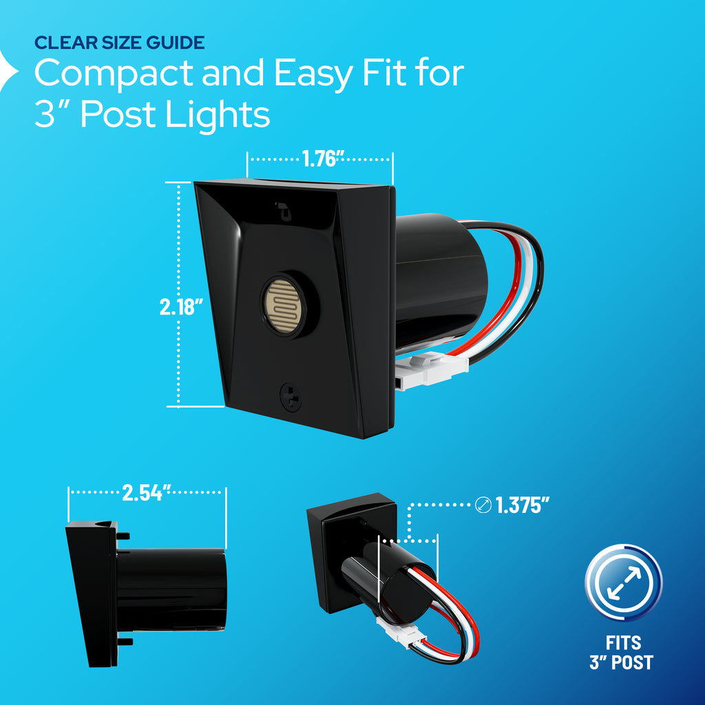 - EASY 3″ POST INSTALL: A plug and play wiring lamp post light sensor for 3" poles with a 1.375" opening. Comes with a weather-sealing gasket, wiring caps, and stainless screws. Standard 3-wire hookup keeps installation and replacement fast.