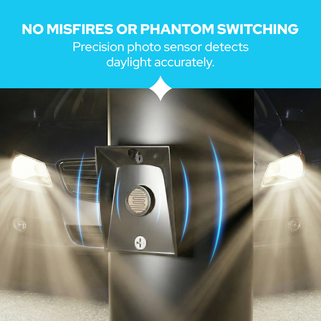 - ACCURATE, CONSISTENT AUTO SWITCHING: Built with a CdS cell for steady, accurate performance. This photo sensor for outdoor light avoids false triggers from headlights, clouds, or ambient light, so your lights turn on only when it’s truly dark.