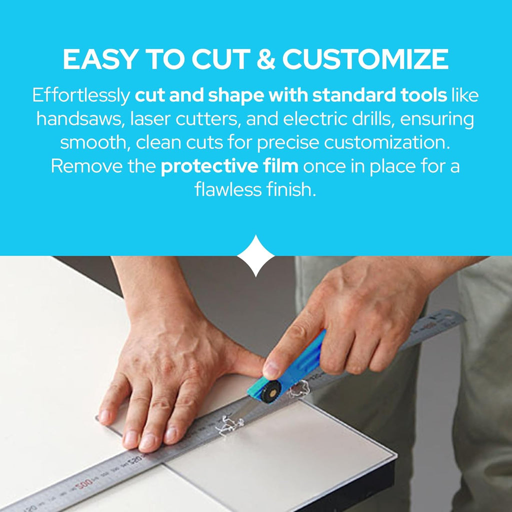 - EASY TO CUT & CUSTOMIZE: These plexiglass sheets 1/4 inch thick are perfect acrylic sheets for laser cutting, with no melting or rough edges. Easily cut with hand or power tools, drilled, scored, and polished for a smooth finish.