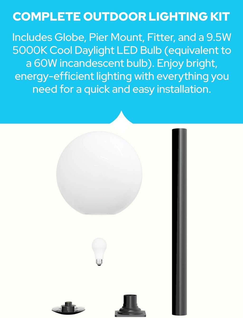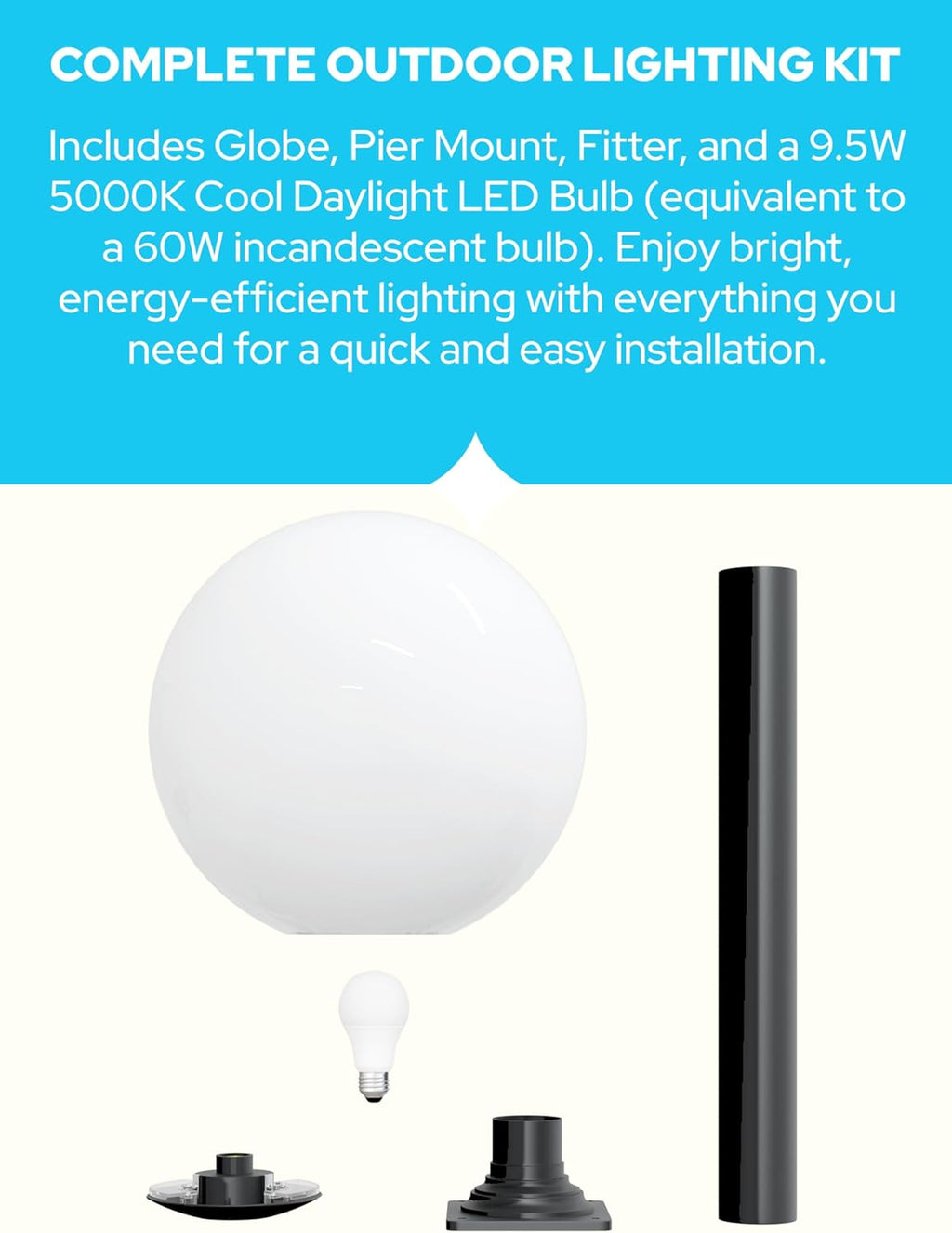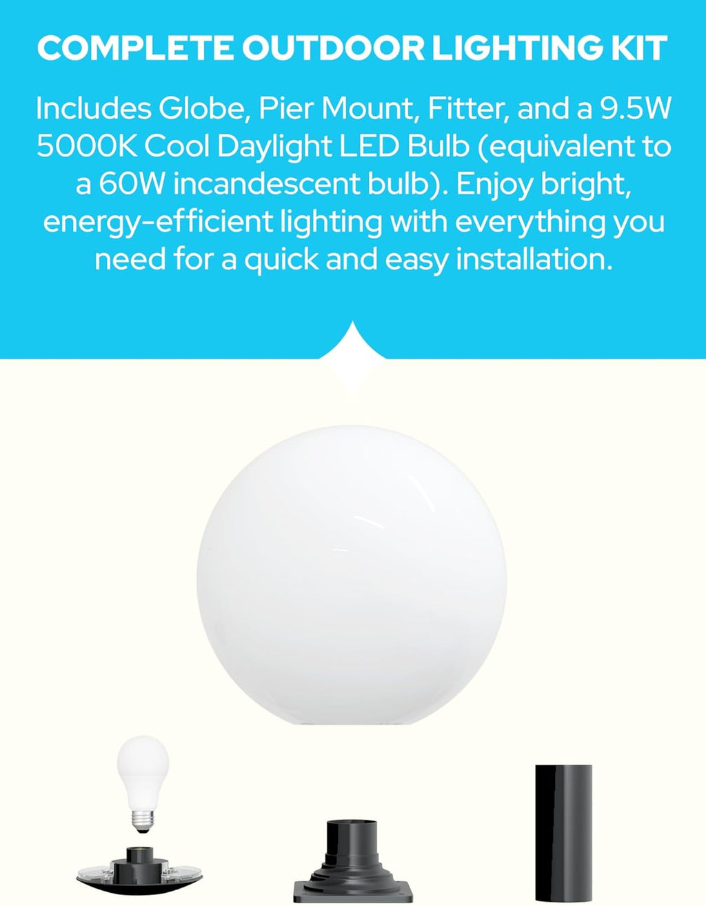 18" Globe Post Light Application with Stub Post Pier Mount