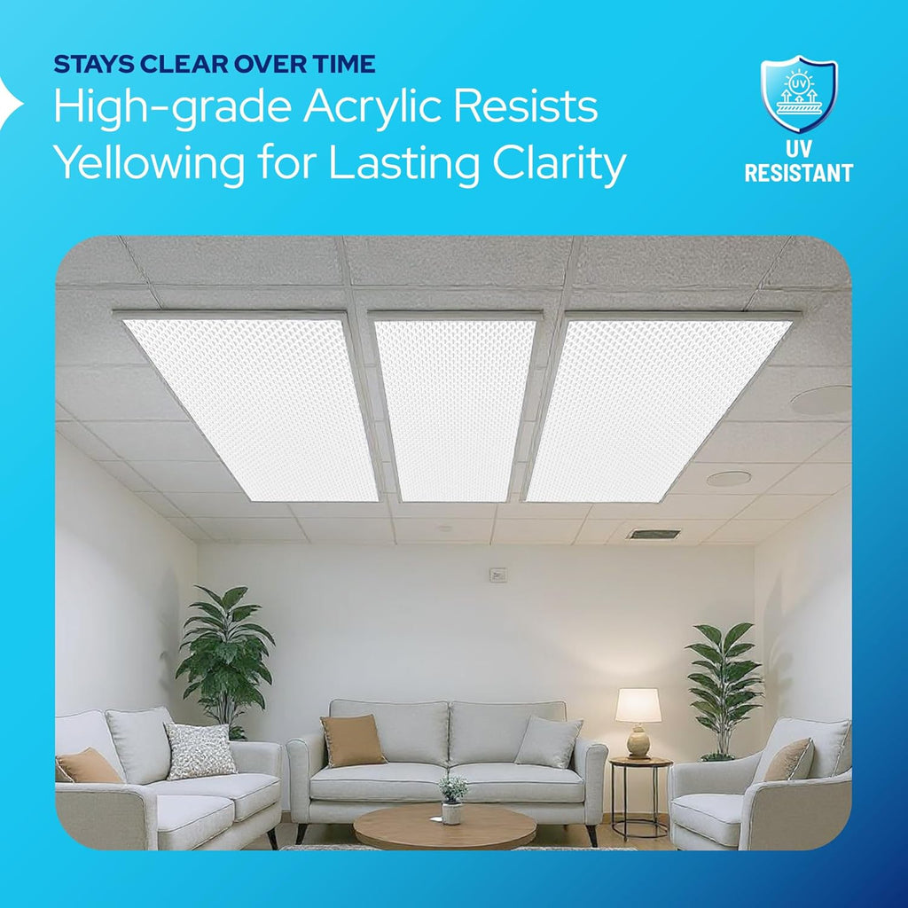 EVEN LIGHT DISPERSION: These panels feature an embossed design that guarantees perfectly-even light dispersion across any large area or room.