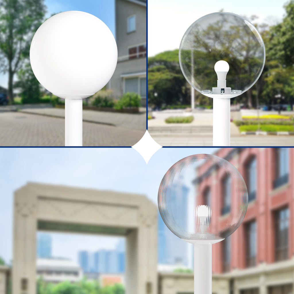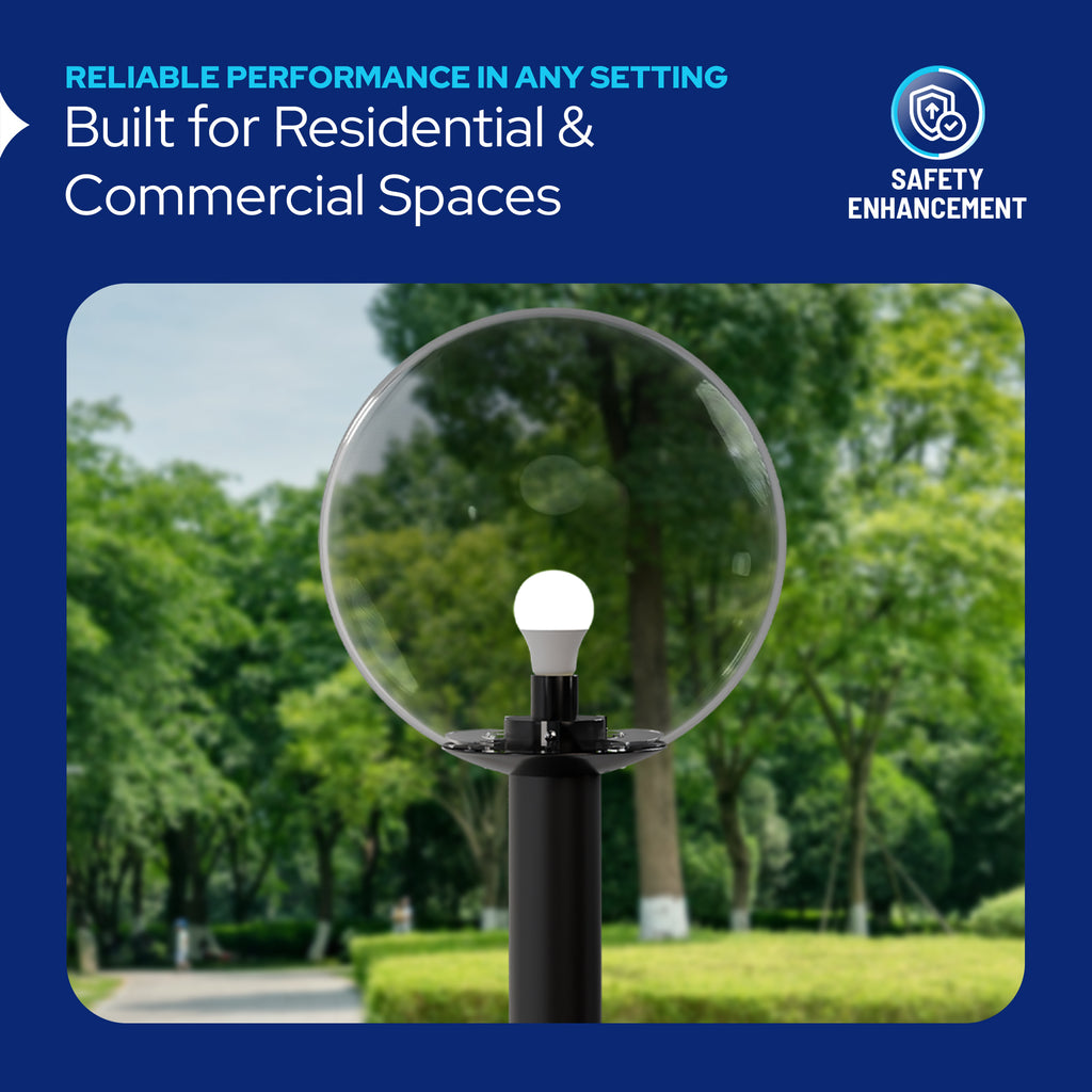 DURABLE MATERIAL: This globe lamp post light fixture base is made from shatter-resistant polycarbonate that resists UV, rust, and cracks—ideal for globe outdoor lights year-round.